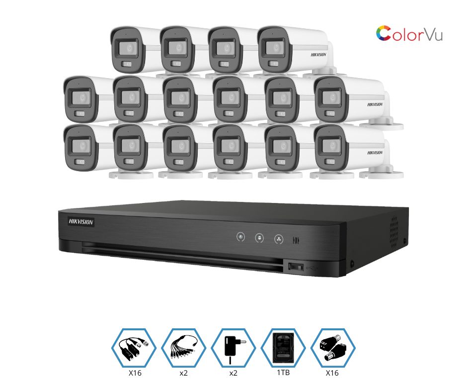 KIT HIKVISION GRABADOR + 16 CAMARAS 2MP VISION NOCTURNA A COLOR + DISCO 1TB COMPLETO