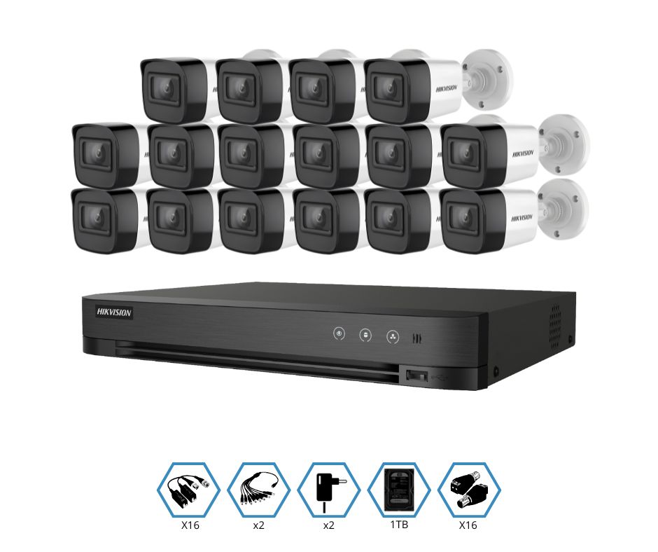 KIT HIKVISION GRABADOR + 16 CAMARAS 2MP VISION NOCTURNA + DISCO 1TB COMPLETO