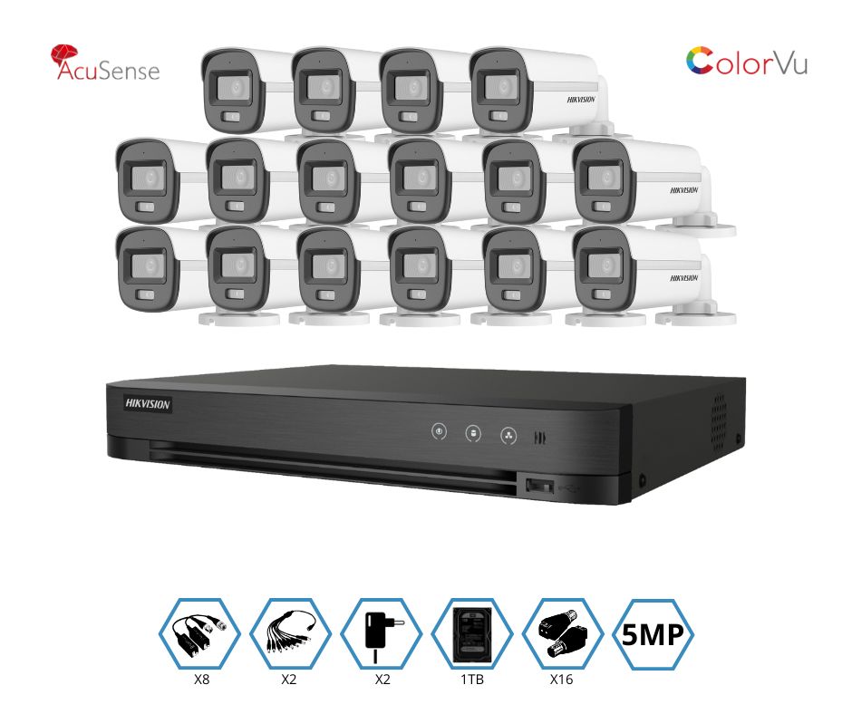 KIT HIKVISION GRABADOR + 16 CAMARAS 5MP VISION NOCTURNA A COLOR CON AUDIO + DISCO 1TB COMPLETO
