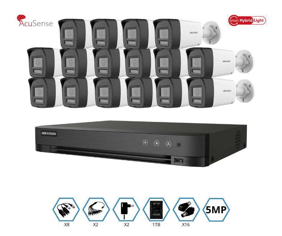 KIT HIKVISION GRABADOR + 16 CAMARAS 5MP VISION NOCTURNA A COLOR + DISCO 1TB COMPLETO