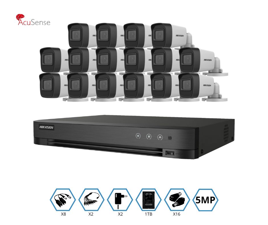 KIT HIKVISION GRABADOR + 16 CAMARAS 5MP VISION NOCTURNA + DISCO 1TB COMPLETO