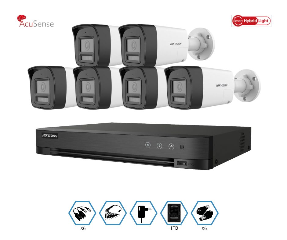 KIT HIKVISION GRABADOR + 6 CAMARAS 2MP VISION NOCTURNA A COLOR CON AUDIO + DISCO 1TB COMPLETO