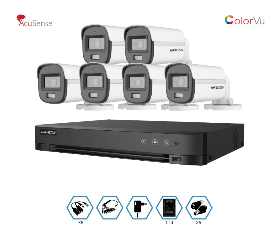 KIT HIKVISION GRABADOR + 6 CAMARAS 2MP VISION NOCTURNA A COLOR + DISCO 1TB COMPLETO