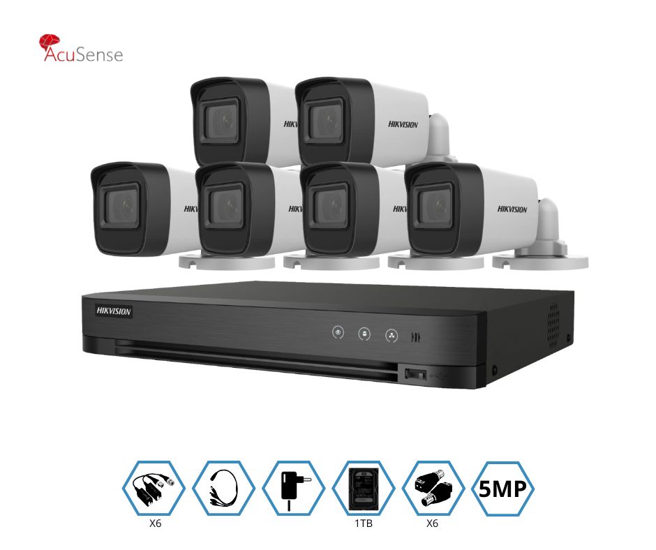 KIT HIKVISION GRABADOR + 6 CAMARAS 5MP VISION NOCTURNA + DISCO 1TB COMPLETO