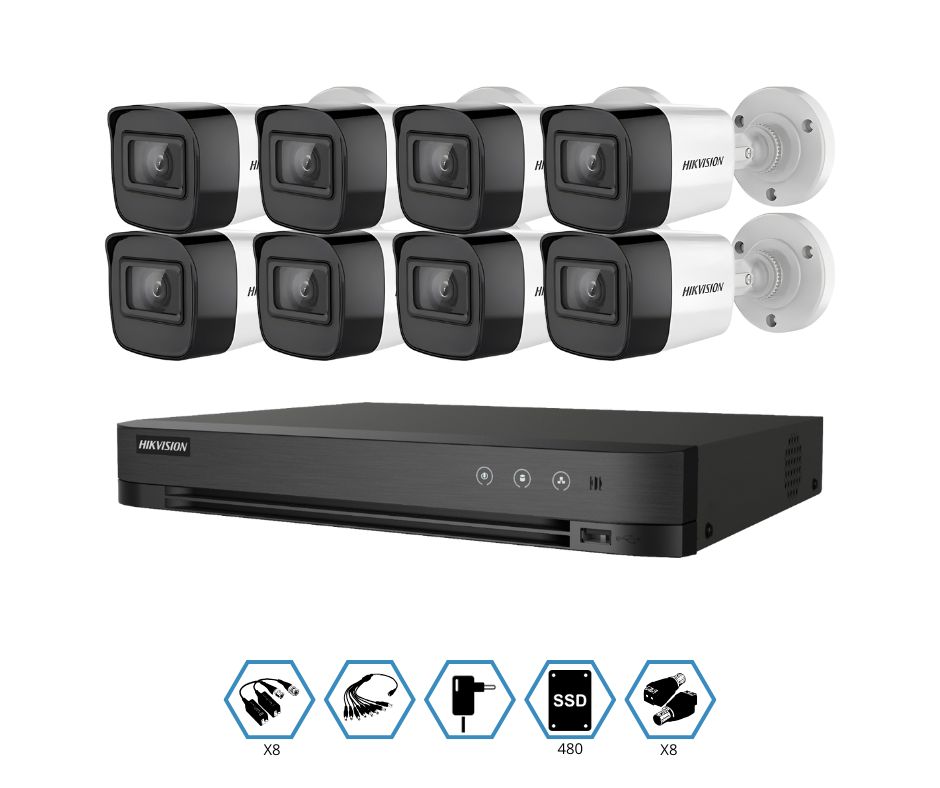 8 Cámaras Hikvision 2mp DS-2CE16D0T-EXIPF(2.8MM)(O-STD)