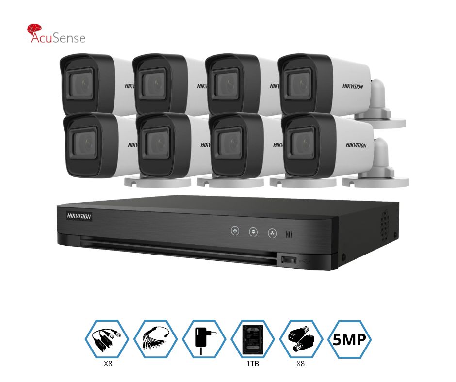 KIT HIKVISION GRABADOR + 8 CAMARAS 5MP VISION NOCTURNA + DISCO 1TB COMPLETO