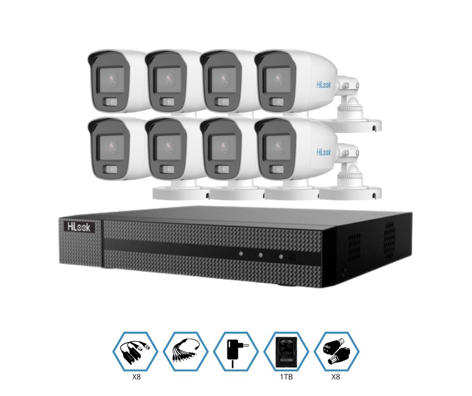 KIT HILOOK GRABADOR + 8 CAMARAS 2MP VISION NOCTURNA A COLOR + DISCO 1TB COMPLETO