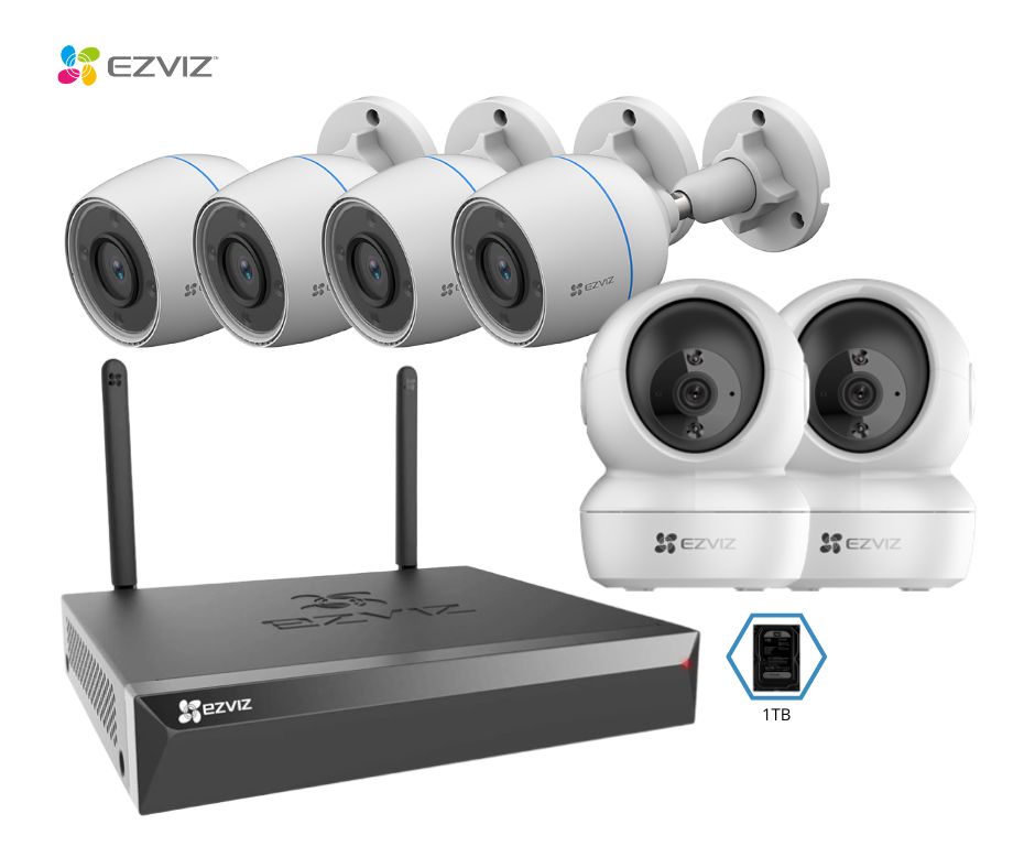 KIT INALAMBRICO EZVIZ GRABADOR + 6 CAMARAS 2 INTERIOR - 4 EXTERIOR + DISCO 1TB