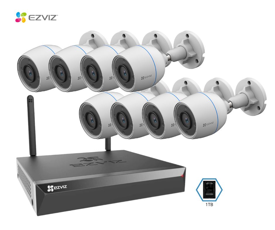 KIT INALAMBRICO EZVIZ GRABADOR + 8 CAMARAS EXTERIOR + DISCO 1TB