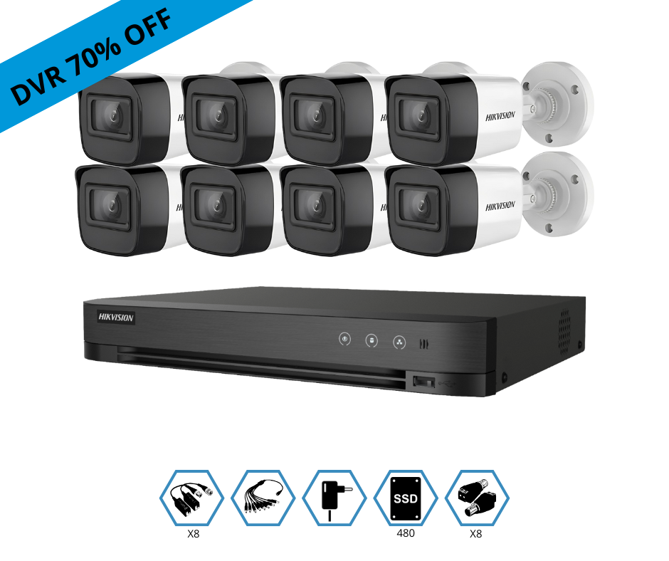 8 Cámaras Hikvision Bullet Metalico 2mp 1 Fuente 12v 5amp